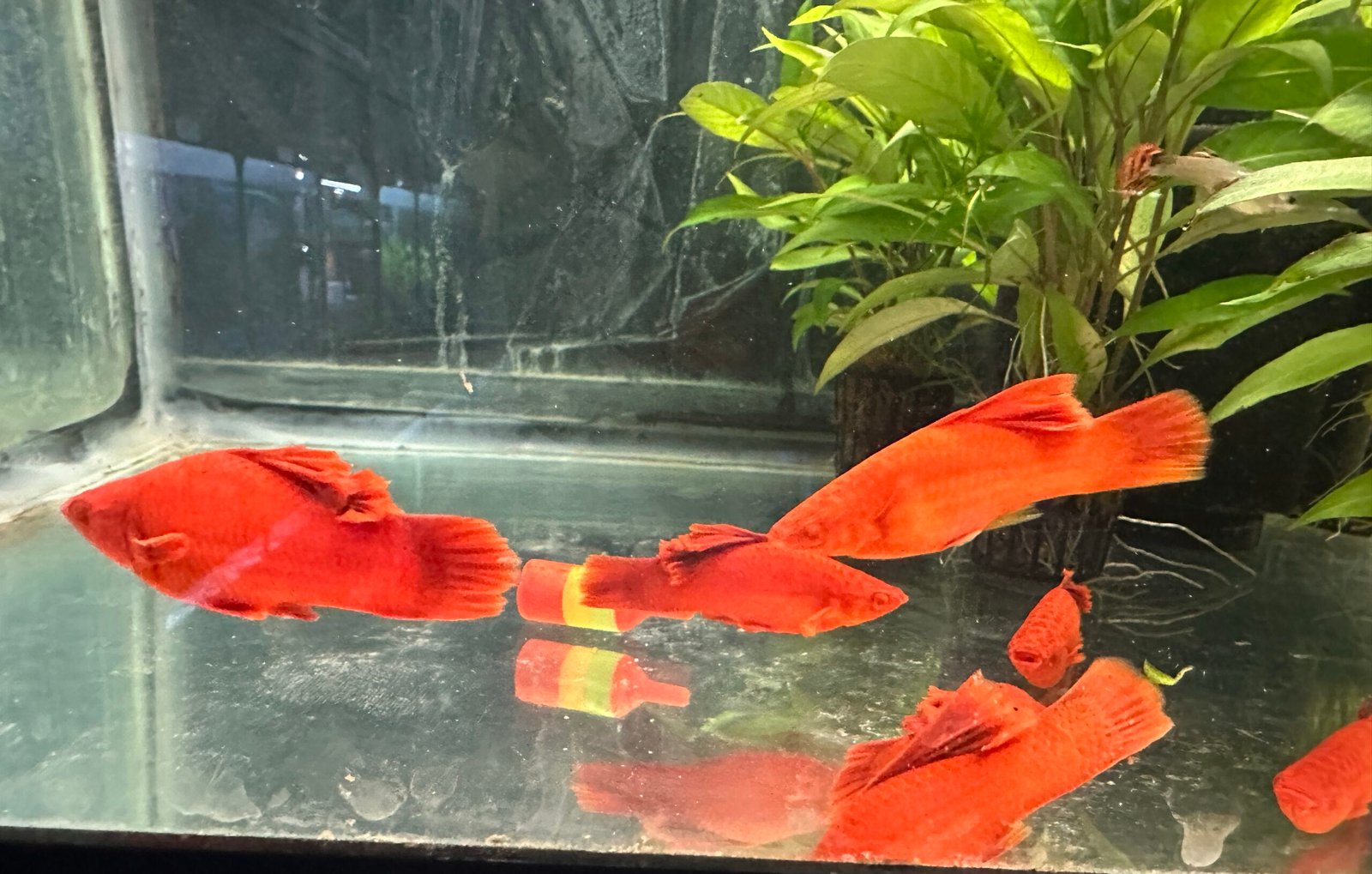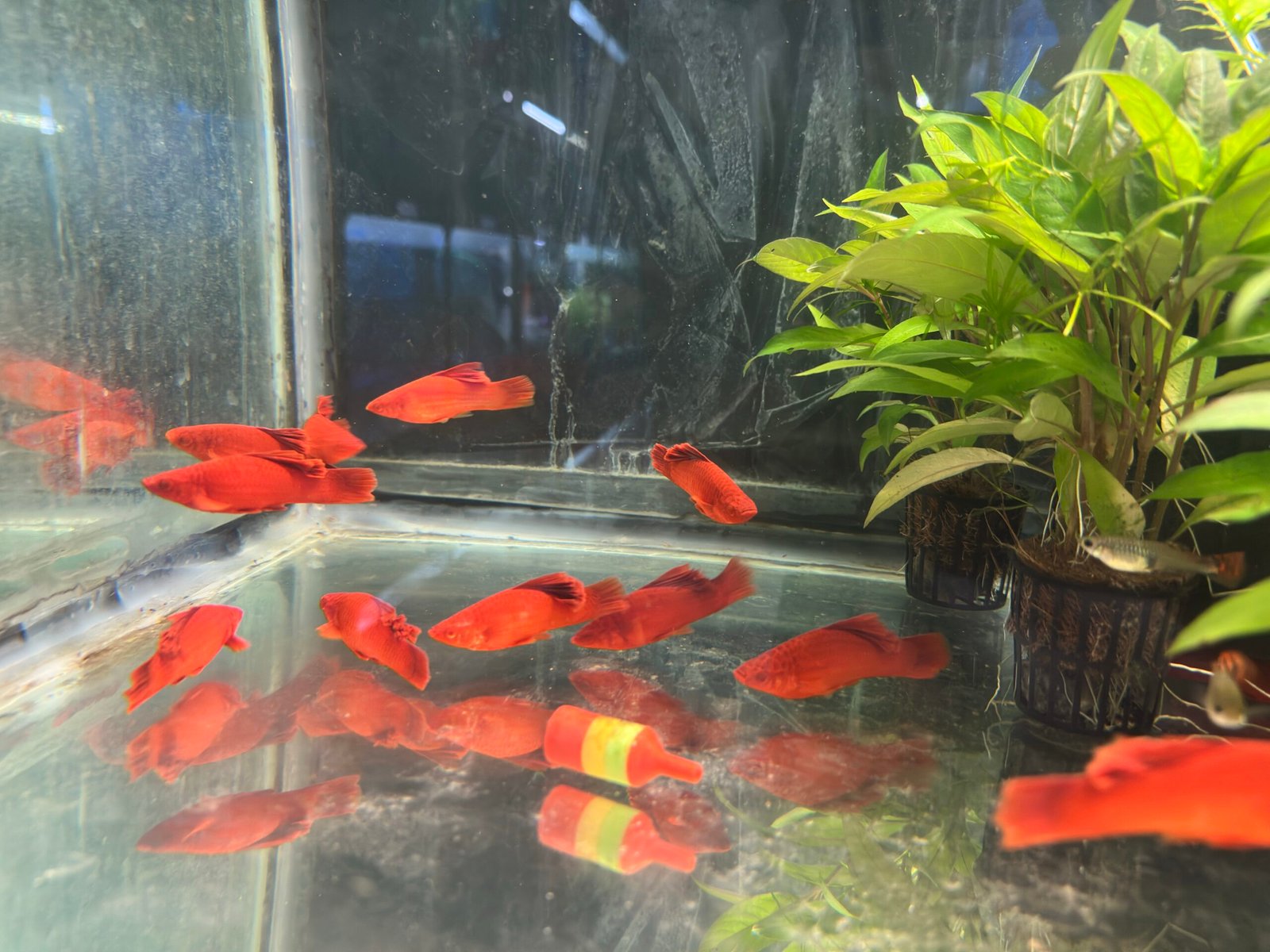 Meet the Cauli Red Swordtail, a showstopping livebearer with blazing crimson hues and a signature sword-like tail. Bold, active, and endlessly entertaining, these fish bring fiery energy to community tanks while breeding readily for endless aquatic excitement – only $25 per fish!